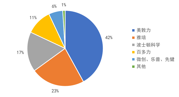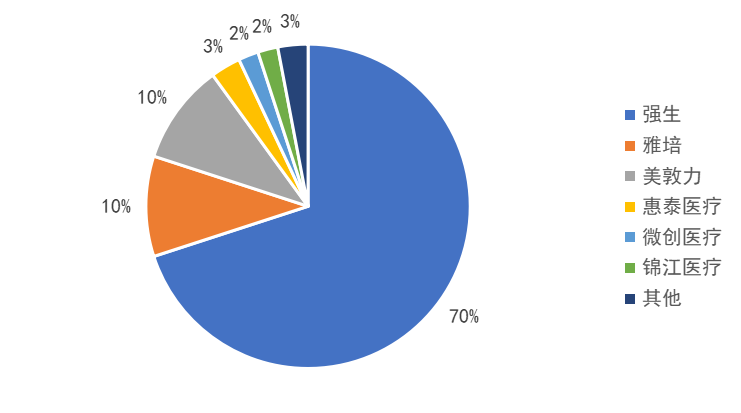 腦血管介入器械(又稱神經(jīng)介入器械)是指治療中樞神經(jīng)系統(tǒng)血管疾病的微創(chuàng)醫(yī)療器械。美敦力作為全球腦血管介入器械行業(yè)的引領(lǐng)者,進入中國市場20余年,以其全球領(lǐng)先的高技術(shù)產(chǎn)品占據(jù)國內(nèi)60%市場份額。而國內(nèi)品牌如微創(chuàng)神通、心瑋醫(yī)療、沛嘉醫(yī)療、歸創(chuàng)通橋等多以生產(chǎn)微導管類、微導絲類等通路類產(chǎn)品為主。