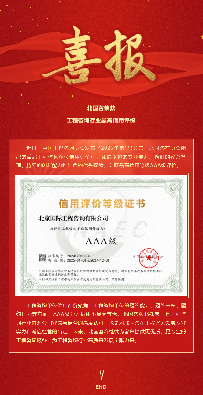 喜報!北國咨榮獲工程咨詢行業最高信用評級